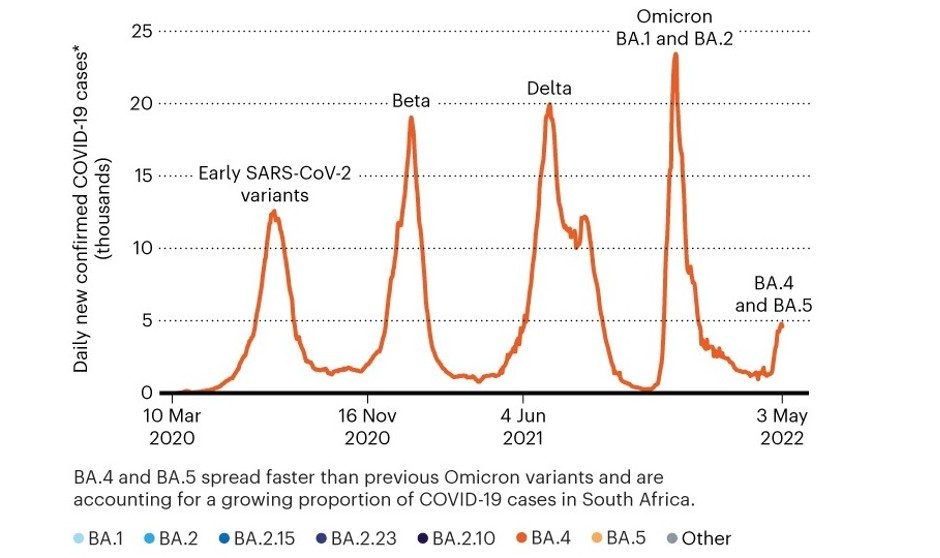 estamos entrando en un resurgimiento en Sudáfrica, y parece estar impulsado completamente por BA.4 y BA.5", asegura a