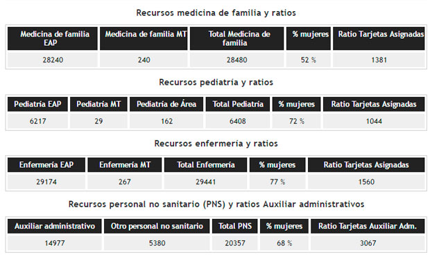 su presencia en el sistema se recortó. De esta manera, mientras que en 2014 había 28.500 médicos de familia en el SNS y un ratio de tarjetas por cada uno de 1.373, en