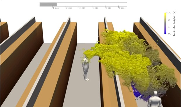 De esta forma, la nube de aerosol se extiende más allá de la persona que tose y se queda en el lugar varios minutos. "