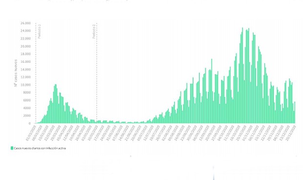 En cuanto a las muertes, Sanidad ha registrado ya 4.874 fallecimientos en Andalucía (77 en la última semana); en Aragón 2.562 (48 en los últimos siete días); en Asturias 1.302 (50 en la última semana); en Baleares 447 (16 en los últimos siete días); en Canarias 394 (27 en una semana); en Cantabria 363 (12 en los últimos siete días); en Castilla-La Mancha 4.042 (55 en la última semana); y en Castilla y León 4.992 (66 en los últimos siete días).