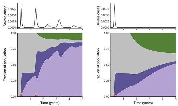 características de la respuesta inmune provocada por la infección natural o la vacunación aún son inciertas", reconocen los autores. A través de "modelos epidemiológicos simples hemos explorado y estimado la