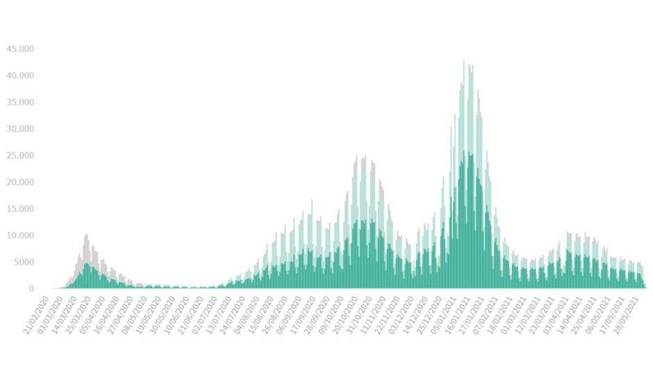 La incidencia, no obstante, continúa descendiendo hasta situarse en 115 casos por cada 100.000 habitantes en los últimos 14 días, dos puntos menos que el viernes. Solo en la última semana han fallecido 91 personas con diagnóstico confirmado de Covid-19 y se han detectado 25.354 casos de la enfermedad.