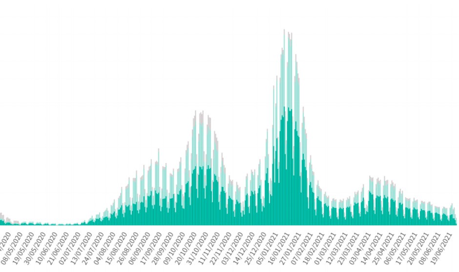 10.000 casos nuevos, en concreto 10.179. Las regiones que presentan más casos diagnosticados en los últimos 7 días son Andalucía (6.088), Cataluña (5.422), Madrid (2.850), Comunidad Valenciana (2.437), Canarias (1.243) y País Vasco (1.088).