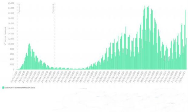 En cuanto a las pruebas diagnósticas, desde el pasado 29 de diciembre y hasta el 4 de enero se han realizado 804.158, de las cuales 513.251 han sido PCR y 290.907 test de antígenos. La tasa total de positividad se sitúa en el 14,09 por ciento.