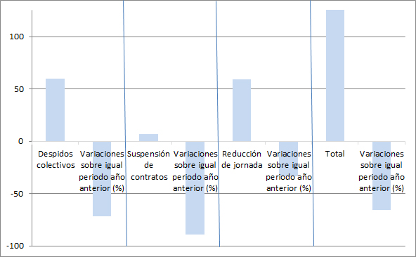 Así se deduce de la lectura de los datos estadísticos publicados por el Ministerio de Empleo y Seguridad Social, según los cuales, en ese intervalo de tiempo se han producido 126 expendientes en el campo de las actividades sanitarias y los servicios sociales, ya sea a través de un despido colectivo (60), una suspensión de contrato (siete) o una reducción de su jornada laboral (59).