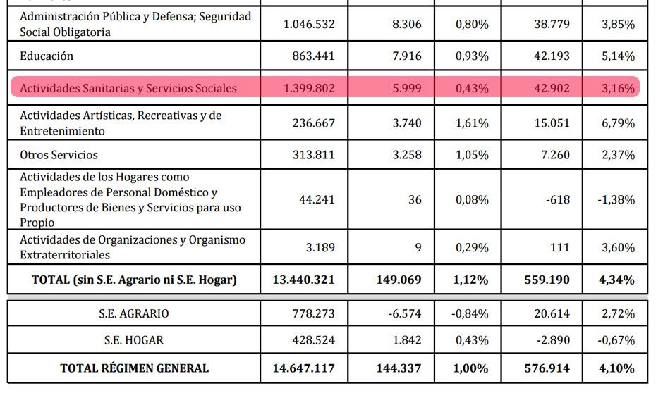 Al término de marzo, el sector de las actividades sanitarias y los servicios sociales cuenta con 1.399.802
