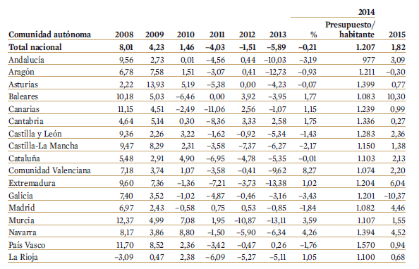 El Consejo Económico y Social de España (CES) aborda la situación de la sanidad española tras años de recortes. A pesar de que alaba el ascenso del presupuesto sanitario por habitante en 2015 (un 1,82 por ciento más, hasta los 1.228 euros), avisa de la amplia dispersión del gasto entre regiones. Y es que casi 600 euros separan a la autonomía que menos fondos dedica a la atención sanitaria por ciudadano, Andalucía, de la que más invierte en este ámbito, País Vasco.