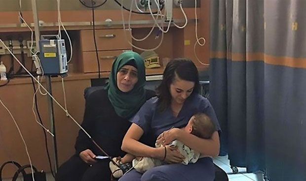 Una enfermera judía ha enternecido el corazón del mundo entero al ser fotografiada amamantando a un bebé de una mujer palestina que tuvo que ser hospitalizada en Israel tras sufrir graves heridas en un accidente de tráfico en el que murió el padre de la criatura.
