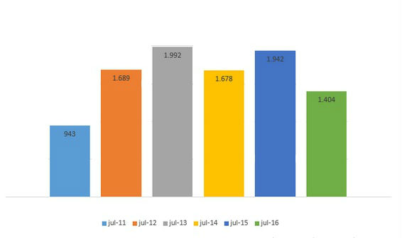 El empleo médico logra su mejor marca de los últimos cinco años, pero se queda corto. Durante el mes de julio, el total de licenciados en Medicina situados en el paro descendió hasta los 1.404 profesionales, lo que se traduce en 538 menos que el mes anterior (un 27 por ciento), así como una contracción del 10,57 por ciento en comparación con el mismo período del año anterior, según revelan los datos emitidos por el Servicio Público de Empleo Estatal (SEPE). En este sentido, la tasa de desempleo es un 33,7 por ciento superior a la obtenida en 2011, cuando el número de parados era de 943 personas.