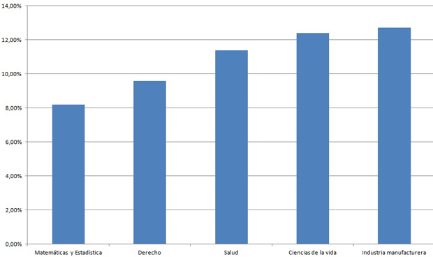 Los profesionales formados en salud presentan una tasa de paro del 11,39 por ciento, sólo superada por derecho, con un 9,58 por ciento de paro, y Matemáticas y Estadística, con un 8,20 por ciento.