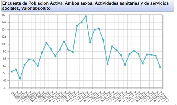paro en actividades sanitarias desde el 1,9 por ciento de principios de año hasta el 1,5 por ciento del tercer trimestre, un descenso de 21.900 personas menos.
