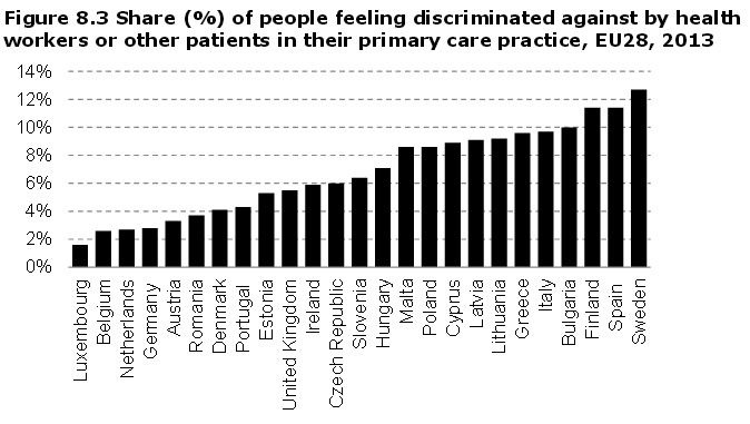 La Atención Primaria española también ha sido el escenario para la discriminación. En el informe se indica que España es la segunda nación donde se han registrado más casos de discriminación por género, edad o raza, con un total del 11 por ciento. En este sentido, se ubica al mismo nivel que Finlandia y solo por debajo del 13 por ciento alcanzado por Suecia.