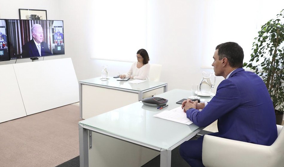 Pedro Sánchez participa en la II Cumbre Global del Covid-19 de manera virtual, junto con Joe Biden