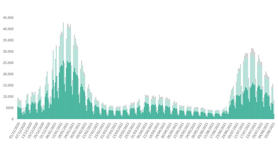 El departamento encabezado por Carolina Darias ha notificado, 15.657 nuevos casos de Covid-19, 7.968 de ellos diagnosticados en las últimas 24 horas, 3 veces menos que la cifra registrada el viernes de la semana pasada, lo que insinúa la tendencia a la baja en la evolución de casos. Aún así, solo en las dos últimas semanas se han contabilizado 219.334 positivos.