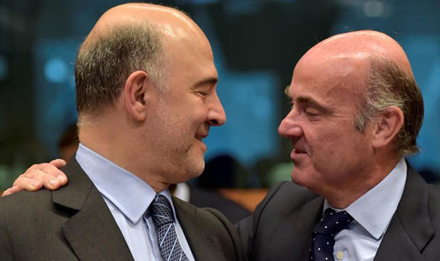 Pierre Moscovici, comisario de Economía de la Comisión Europea, y luis de Guindos, ministro de Economía, Industria y Competitividad.