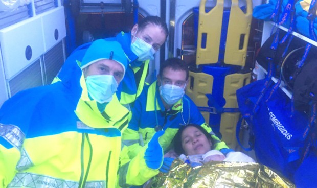 “Llegamos al domicilio y el parto ya se encontraba en curso. Intentamos alargarlo todo lo posible para que se produjera en el domicilio. A la vista de que el bebé se retrasaba decidimos trasladar a la paciente en la UVI móvil al hospital. Durante el camino la mamá no se puedo aguantar más y tuvimos que parar la ambulancia para asistir el parto.