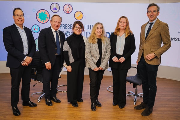 José María Eiros, catedrático de Microbiología de la Universidad de Valladolid y jefe del Servicio de Microbiología en el Hospital Río Hortega; David Martín Fernández, jefe del Área de Vacunas y director de Acceso al Mercado en Salud Pública de GSK; Bárbara Astilleros, José Luis Lannegrand, director nacional de Ventas de Salud Pública de GSK; Ignacio Sánchez, director del Área de Salud Pública de GFK.
