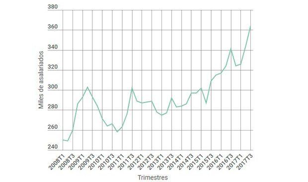 España ya que aumenta en 22.300 los empleados con los que contaba en el tercer trimestre de 2016, cuando había 341.900 trabajadores en este sector.