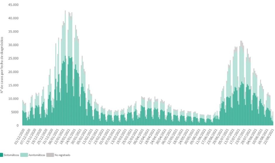 En cuanto a los contagios diarios, las comunidades autónomas han notificado a Sandiad