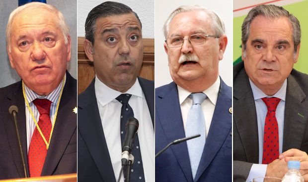 Florentino Pérez Raya, Óscar Castro, Serafín Romero y Jesús Aguilar, presidentes de los Consejos Generales de Enfermeros, Dentistas, Médicos y Farmacéuticos.