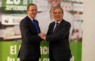 Alfonso Alonso, ministro de Sanidad en funciones, y Jesús Aguilar, presidente del Consejo General de Farmacéuticos.