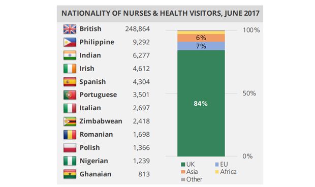 enfermeras extranjeras aporta al servicio de salud británico, sólo por detrás de Filipinas, la India e Irlanda.
