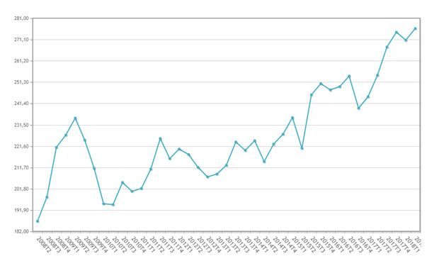 de 186.700 a 234.600 trabajadoras. El crecimiento paró ese mismo mes y se precipitó a datos de 2008 durante los años de la crisis (hasta 2011) en el que se empezó a recuperar. Desde entonces, con las particulares subidas de