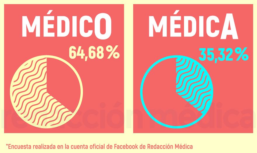 ¿cómo preferís que os llamen: 'médico' o 'médica'? un 64,68 por ciento de las participantes en la encuesta se decanta por la primera opción y un 35,32 elige que las designen como médicas. Se trata de un sondeo en el que han participado más de 300 personas, pero del que se han extraído los datos correspondientes únicamente a mujeres.