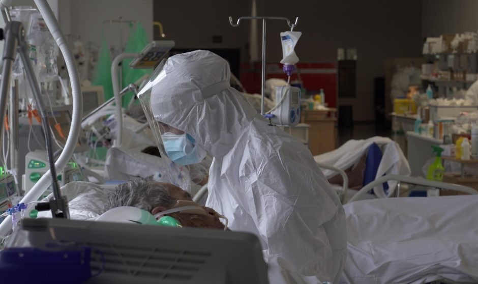 Un facultativo sanitario atienda a un paciente de Covid-19.