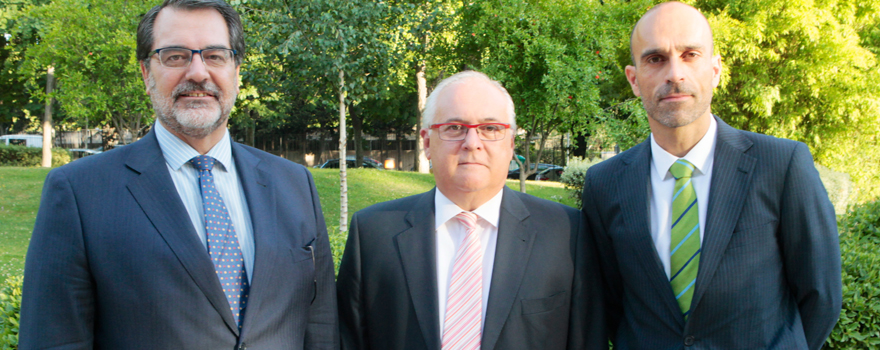 Félix Bravo, presidente de la Agrupación Territorial de Sedisa en Madrid; Miguel Ángel Molinero, director gerente del Hospital de Getafe, y Ángel Puente, presidente de Cogesa.