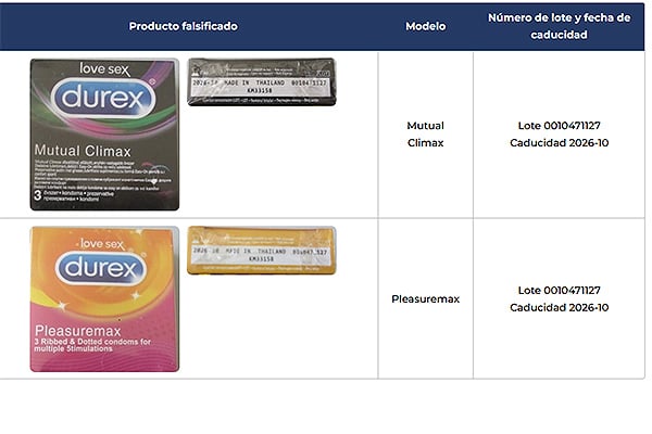 unidades falsificadas de preservativos de la marca Durex comercializadas en el mercado español.