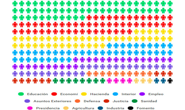 Con estas cifras, Sanidad es el quinto ministerio que menos ‘cantera’ de jóvenes tiene trabajando, solo superada por Fomento (la primera, con cuatro trabajadores menores de 30 años);Industria, Energía y Turismo (con nueve); Agricultura, Alimentación y Medio Ambiente (con 12); y Presidencia (con 14). Al otro lado de la balanza, Educación, Cultura y Deporte es el ministerio con más funcionarios de estas características (232), seguido de Economía y Competitividad (219) y Hacienda y Administraciones Públicas e Interior, que ambas tienen 172.