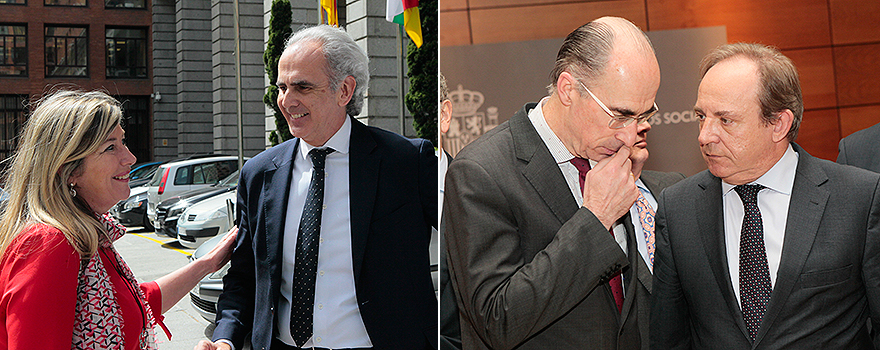 A la izquierda, Patricia Gómez, consejera de Salud de las Islas Baleares; a la derecha, Jesús Vázquez Almuíña, consejero de Sanidad de Galicia, junto a Javier Castrodeza. |