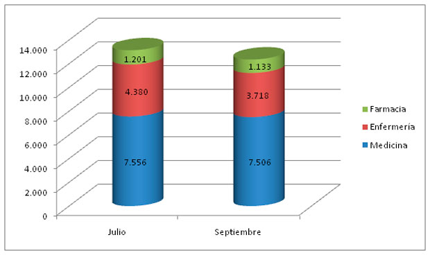 En términos generales, la Unión Europea necesita 12.357 profesionales sanitarios procedentes de España, 780 menos que cuando arrancó el verano, suponiendo un descenso del 6 por ciento.