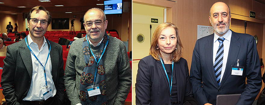 María Vila charlando con Juan Pablo García-Capelo. Pedro Santos, director de marketing europeo de Medtronic Iberia; María García de Pablo, business developer en IHS.