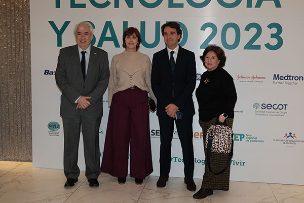 Fernando Bandrés, presidente de la Fundación Tecnología y Salud; Margarita Alfonsel, María Jesús Lamas; José María Fernández Rañada, jefe del Servicio de Hematología y Hemoterapia del Hospital Quirónsalud de Madrid; y Jorge Huertas, presidente de Fenin.