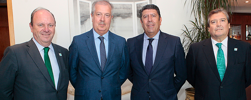 A la izquierda, Rafael Pérez Santamarina saluda a Javier Godoy. A la derecha, José Ignacio Valerio y Emilio Arraba, director de Servicios y de Operaciones, respectivamente de General Electric.