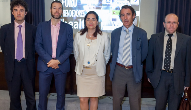 De izq. a dcha..: Ángel Lanuza coordinador de la Plataforma de Fenin; Belén Soto, presidenta del Sector e-Health; César Rubio, coordinador sector e-Health de Fenin; Alfonso Beltrán, subdirector General del Instituto de Salud Carlos III, y Juan Luis Romera, del Departamento Salud, Bioeconomía, Clima y Recursos Naturales, Dirección de Promoción y Cooperación del CDTI.