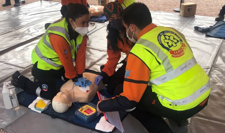 Simulacro de RCP durante la campaña formativa en Madrid.