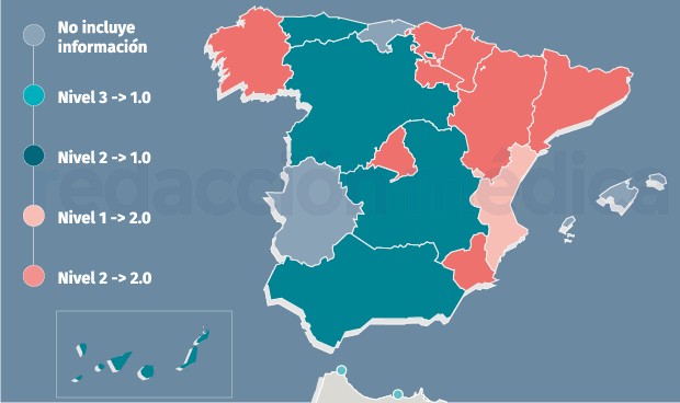 Niveles de accesibilidad 1.0 y 2.0 de las comunidades autónomas.